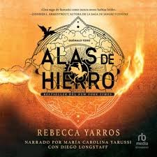 Alas de hierro de Rebecca Yarros es la segunda novela de la serie de fantasía juvenil Empíreo y sigue a Violet Sorrengail en su entrenamiento como jinete de dragones en un colegio militar brutal. Violet debe superar pruebas físicas y emocionales extremas, enfrentándose a una disyuntiva: traicionar al hombre que ama para sobrevivir o arriesgar su vida. La novela combina aventura, fantasía con dragones,y romance, en un mundo lleno de criaturas mitológicas y conflictos entre reinos.